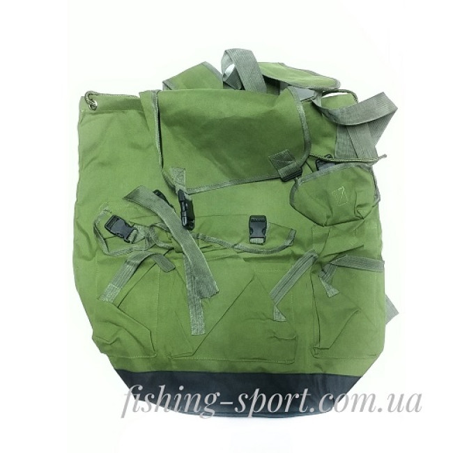 Вместительный рюкзак для рыбака, охотника, туриста. Прочный брезент, усиленное дно. Горловина затяжная. Наружные карманы.