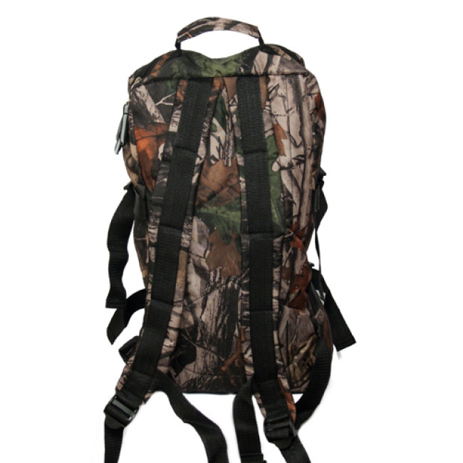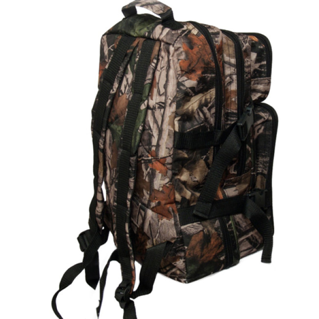 Данная модель имеет два вместительных отделения, а также два дополнительных фронтальных кармана среднего объёма. Это позволяет использовать рюкзак в путешествиях. Лямки рюкзака достаточно широкие и мягкие, что позволяет равномерно распределить нагрузку на плечевой сустав и избежать передавливания кровеносных сосудов. Что делает данную модель весьма удобной в дальних походах. А наличие камуфляжной расцветки позволит оставаться не замеченным при передвижении в лесной местности.