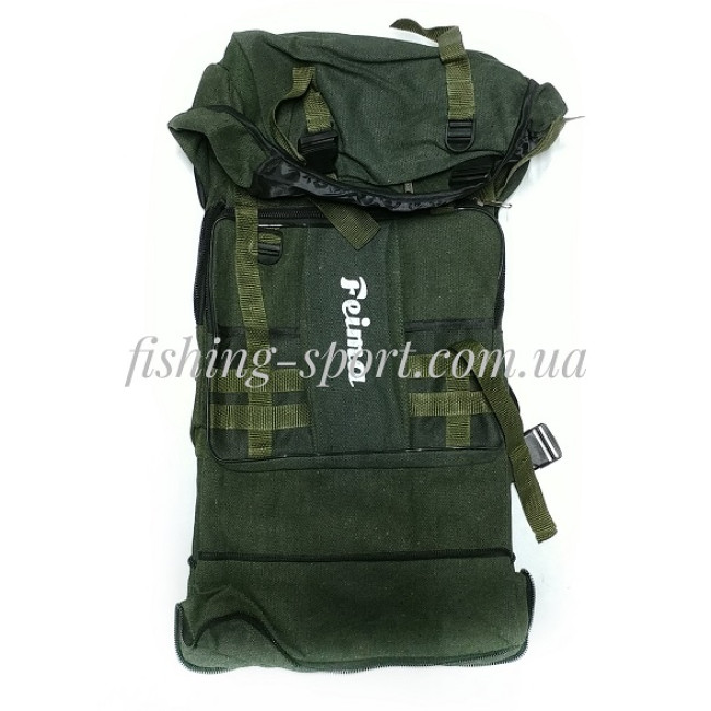 Темно-зеленый рюкзак рыбака, туриста. Фирменный принт Feima. Брезент. Маскировочный окрас. Мягкие удобные лямки для переноски.