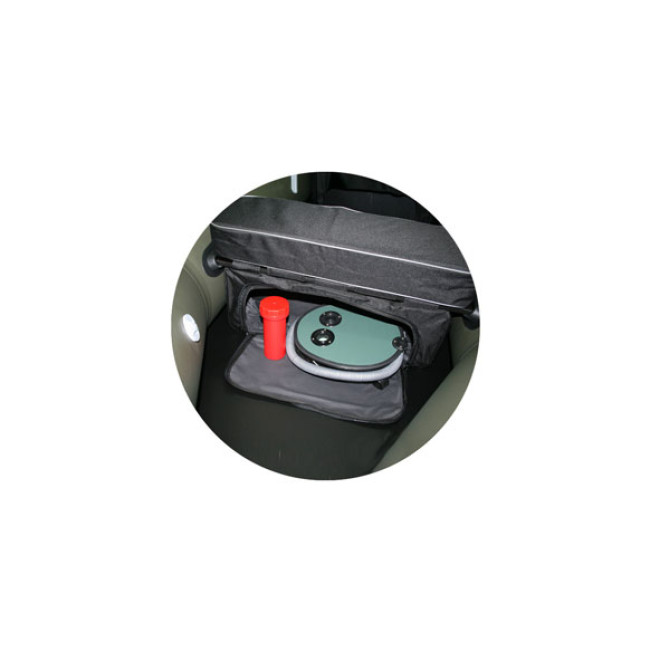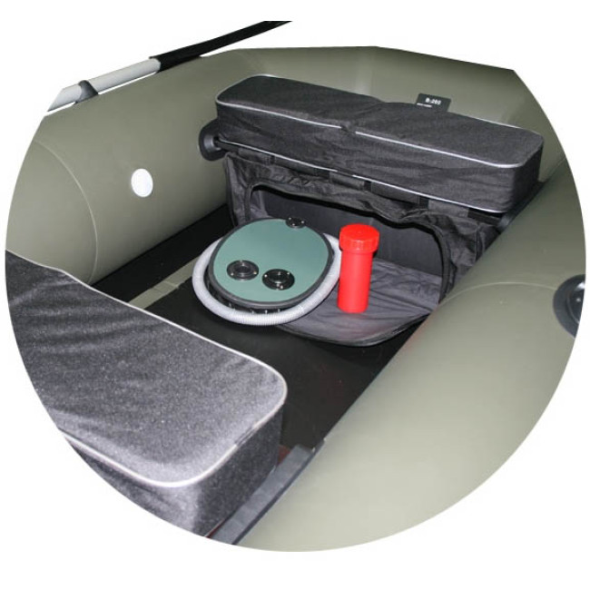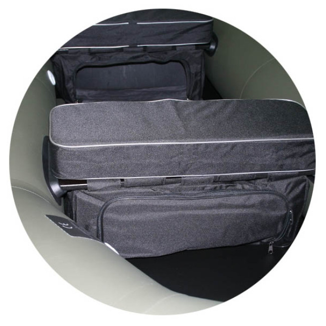 Съемная сумка из прочной непромокаемой ткани, прикрепляется к сиденью надувной лодки с помощью петель- липучек. Оснащена застежкой- молнией. Кроме того, что подседельная сумка позволяет удобно разместить различные мелкие вещи и снасти в одном месте, она позволяет избежать повреждения лодки острыми предметами (крючками, ножами и т. п.).