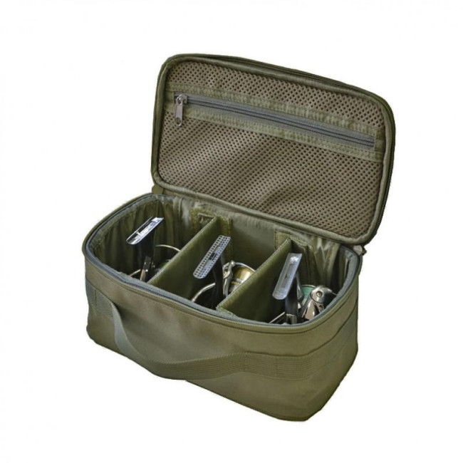 Жесткая сумка для хранения и транспонирования трех безынерционных катушек (до №2500), помогает сохранить целостность катушек, удобная и надежная в использовании. Разработан новый, современный и простой дизайн, имеет карман для мелких аксессуаров. Перегородки снимаются, имеет внешнюю ручку для транспонирования. Сумка имеет следующие параметры: 30x15x11 см., Что позволяет перевозить действительно мощные устройства. Прекрасное сочетание цена-качество.