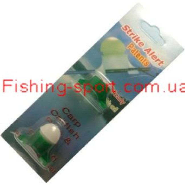 Крепится на вершинку удилища ,при поклеве загорается зеленый диод, без поклевки мигает красный диод.