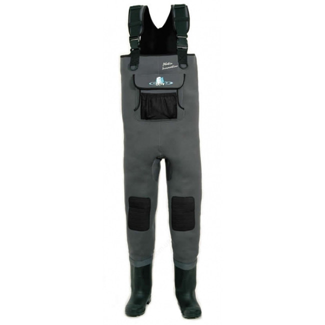 Одним из решений облова труднодоступных и перспективных с берега участков ловли является приобретение вейдерсов. Представляем вашему вниманию доступную по цене и отличную по качеству модель от торговой марки Behr. Данные заброды удовлетворят своей функциональностью самых придирчивых рыболовов. Все швы отлично прошиты и дополнительно проклеены, чем обеспечивается полная защита от проникновения воды. Материал изготовления 4-х миллиметровый неопрен будет очень актуальным в демисезонный период, когда начинает охлаждаться или уже достаточно холодная. Благодаря структуре этого материала, он является отличным теплоизолятором. Исходя из этого, вейдерсы не только обеспечивают прекрасную защиту от воды, но и сохраняют ваше тепло. High Black оснащены удобными сапогами с подошвой, которая имеет хорошее сцепление со скользкой поверхностью, и специальными наколенниками, усиливающими этот участок вейдерсов. На груди размещен вместительный карман для хранения, как рыболовной атрибутики, так и личных вещей. Наплечные регулирующиеся лямки дают возможность «подогнать» заброды по телу рыболова. Другими словами, Neopren High Black – незаменимый элемент снаряжения для современного спиннингиста и нахлыстовика. Сумка и носки входят в комплектацию данной модели.