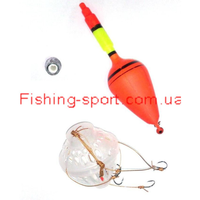 Снасть в сборе для ловли на сыпучий планктон, приманки, каши. Экономная кормушка позволяет использовать доступные приманки для толстолоба вместо прессованного технопланктона.
