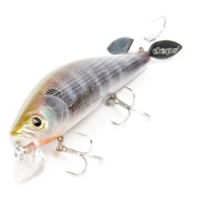 Spiral Minnow - плавающий воблер класса minnow, имеющий пропеллер в хвостовой части. Воблер предназначен для быстрого поиска активного хищника, охотящегося в приповерхностном слое за молодью рыбы. Во время равномерной проводки приманка активно переваливается с боку на бок, создавая боками блики, привлекающими рыбу. При резких коротких рывках и попусках приманки, воблер заглубляется и создает пропеллером завихрения воды и пузырьки воздуха, что напоминает кормящуюся у поверхности молодь белой рыбы, а это не оставит равнодушным жирующего хищника. Воблер Deps Spiral Minnow - превосходная приманка для поиска и ловли не только щуки, но и крупного окуня, и жереха.