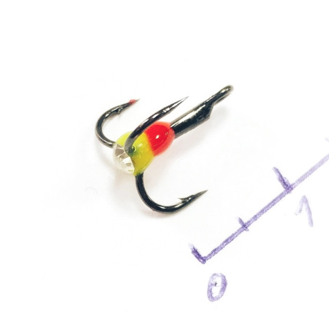 Тройник с яркой каплей, дополнительно провоцирует на поклевку рыбу.
