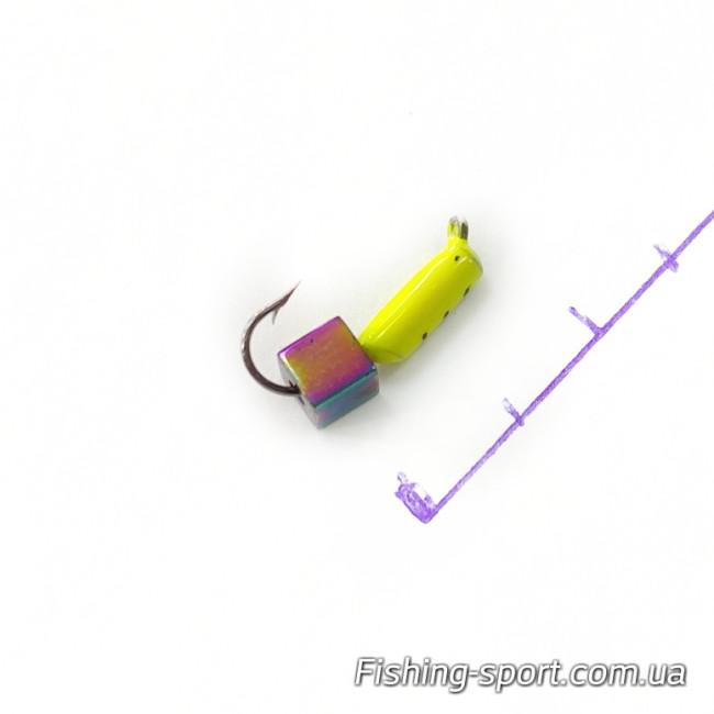Мормышка вольфрамовая Проф Монтаж столбик с яркой окраской лимонного цвета оснащена привлекающей подвеской на крючке в виде кубика которая по душе и плотве и окуню.